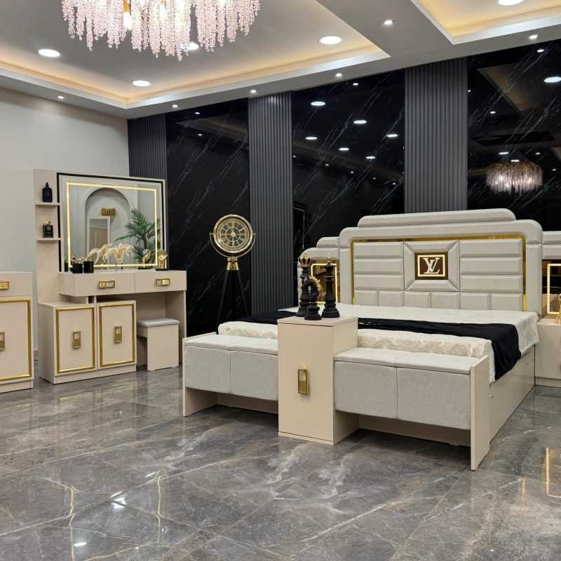 برغي وچوي حديد ضمان فتح وشد الغرفه لاكثر من مره قياس الكنتور 250 سم وارتفاعه 230 سم قياس ملحق الكنتور 85 سم وارتفاعه 230 سم اي بما معناه قياس الكنتور مع الملحق 335 سم قياس السرير مع الكومديات 285 سم ضهر بلوك برغي وچوي حديد صبغ حراري تركي درجه اولى خشب MDF ضد الرطوبه ضمان…